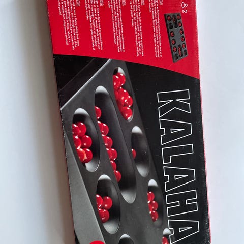 Kalaha brætspil med 14 huller og kugler til at spille det klassiske spil. Spillet kan spilles af 2 personer og bruges til strategisk tænkning og underholdning. Materialet er plast, og spillet leveres i original emballage.