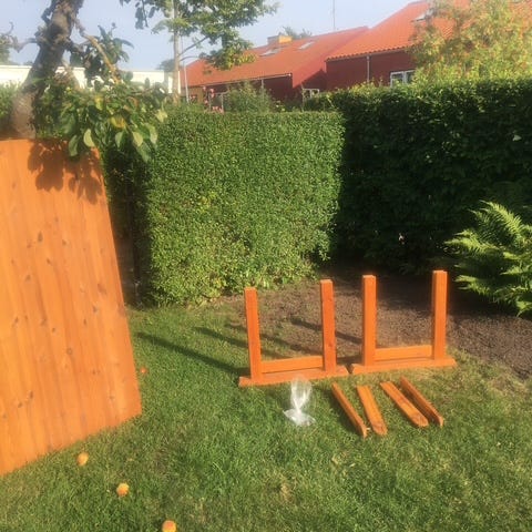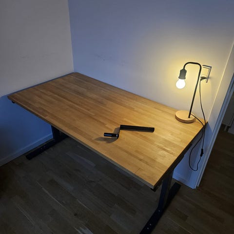 Bordpladen ligger løst på bukkene, som kan justeres manuelt i højden