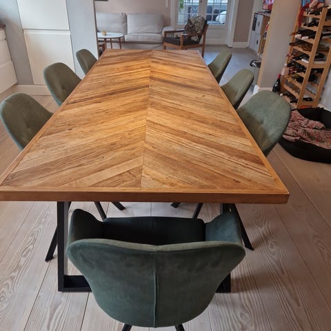 Skal blot have en let slibning og oliering, så står det som nyt.
