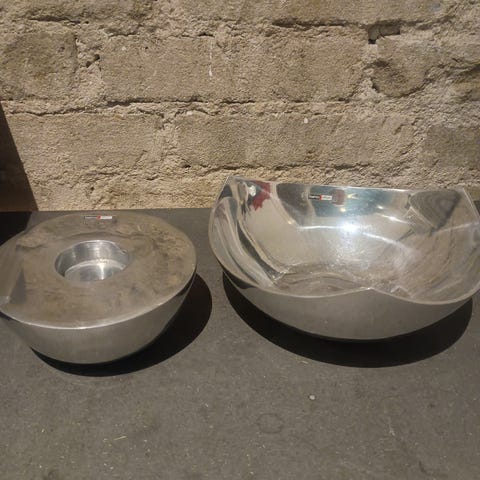 Porcelæn, Kande og fyrfadsstager, Menu Korssting, 3 dele som aldrig har været brugt. Vase (solgt), kande (70) og 2 stk. fyrfadslys (35).