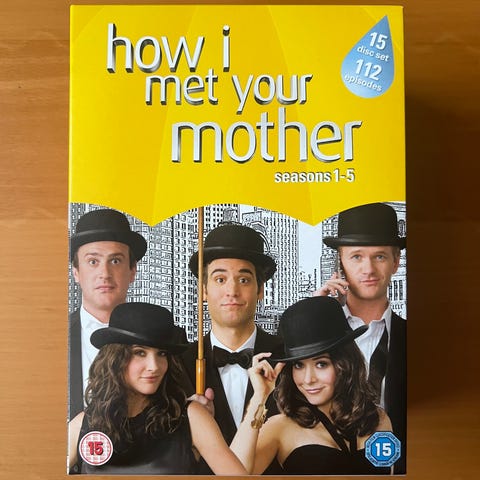 Uåbnede: How I Met Your Mother DVD-samling med sæson 1 til 7. Serien følger hovedpersonerne Ted, Marshall, Lily, Barney og Robin gennem deres liv og relationer i New York City. Indeholder specialfunktioner som kommentarspor, slettede scener og ekstra materiale.