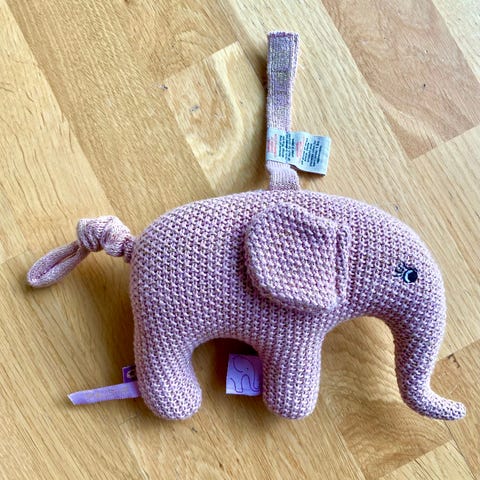 Den kan hænge over barnets seng eller ved puslebordet. Musik: Brahms vuggevise.