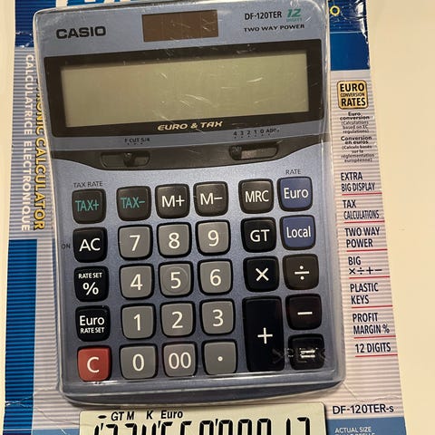 Lommeregneren fremstår meget pæn – æsken har let slid.