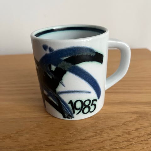 Års krus 1976 med gul og sort mønster