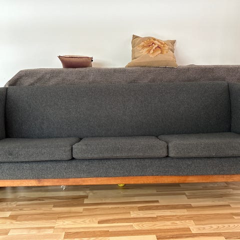 Få kosmetiske skrammer på ben og bagside af rygstykket enkelte steder. Som sagtens kan slibes af hvis man vil give den en kærlig hånd.