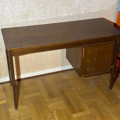 Fint bord men overfladen kunne godt trænge til en kærlig hånd. Skal bores ind i væggen.