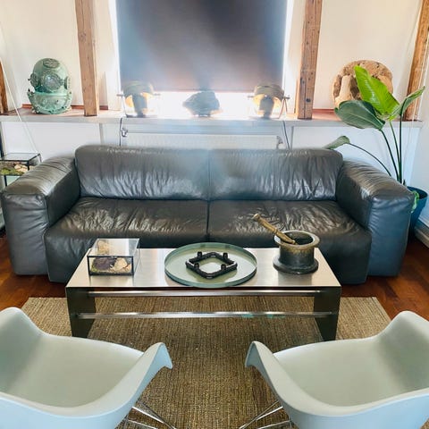 Sofaen har løse ryghynder med fjer/dun (Polydun fra Nortex A/S) med lynlås, så fyld kan justeres/vedligeholdes
