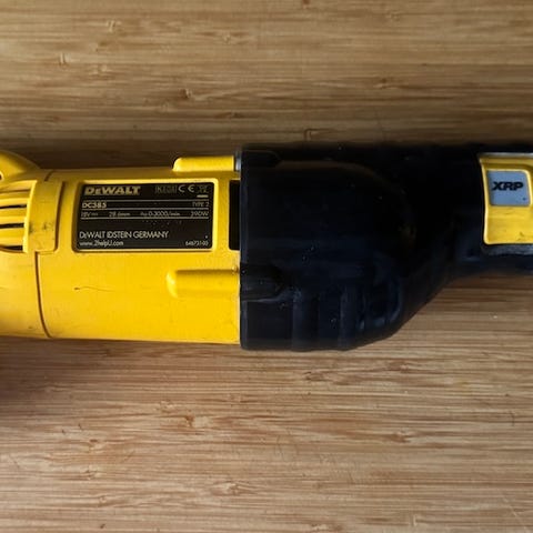 DeWalt DCS367 XR bajonetsav med batteridrevet motor. Værktøjet har et ergonomisk design med gult og sort kabinet. Egnet til forskellige saveopgaver i træ og metal.
