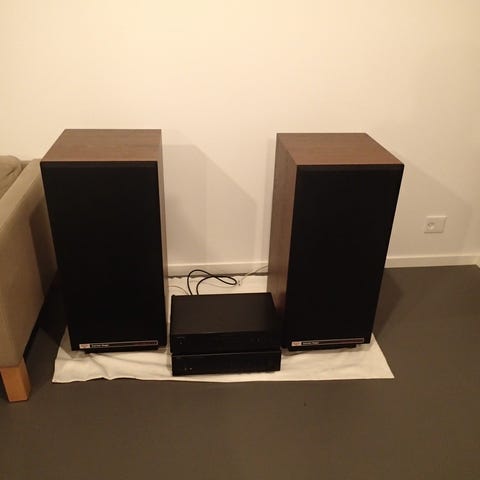 En unik mulighed for at anskaffe sig et en-ejers eksemplar i rigtig god stand. (Ingen huller eller flosser i frontstof) De har med garanti aldrig lidt overlast. Købt i HifiKlubben i 1994.