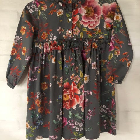 Christina Rohde kjole i str 8 år/128. Kjolen er lavet af eco bomuld og har en lyserød farve med flot blomster mønster, med knapper for. Den har lange ærmer og en løs pasform. Strygefrie flæser i hals og talje. Som ny - uden synlige brugsspor. Fra røg- og dyrefrit hjem. Kan afhentes i Brøndbyvester, eller sendes på købers regning. Følg min profil - køb mere og spar porto.