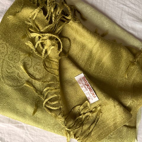 Eksklusivt pashmina-tørklæde i cashmere og silke. Blødt, let og varmt med flotte frynser.