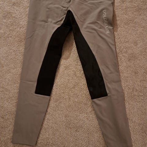 B//Vertigo Ride ridebukser til dame i størrelse 36. Bukserne er grønne og lavet af 61% polyester, 34% bomuld og 5% elastan. Designet til ridning med detaljer, der sikrer komfort og funktionalitet.