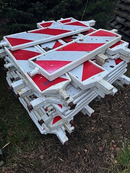 Vi har også brugte danpæle/plastpæle med refleks til fornuftige priser.