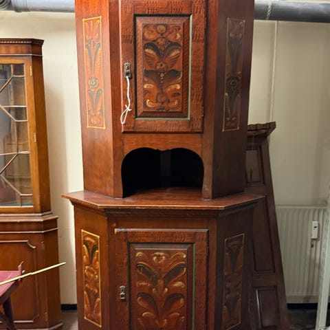 Højt antikt display hjørneskab