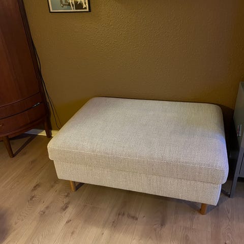 Lækkert lysegrå puf m opbevaring, levering muligt