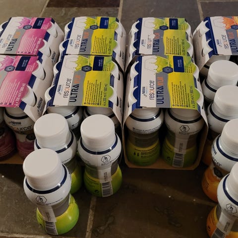 7 flasker á 200 ml Nutridrik Jucy Plus ernæringsdrik med ekstra højt proteinindhold.