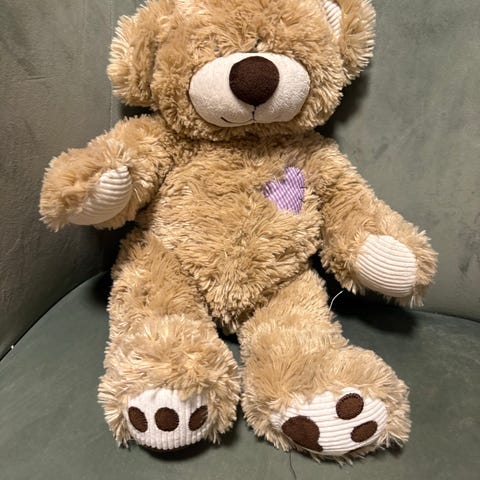 Build-A-Bear Bamse med flerfarvet pels i bløde materialer. Egnet som legetøj til børn.