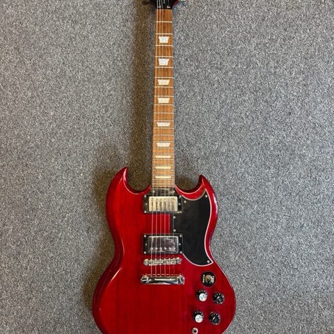 "Custom Shop Limited Edition" SG bygget i Korea i 2008. Det er en halvsjælden model med 3 humbuckere (1 volume til hver)