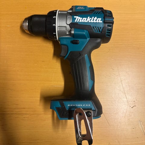 Brugt Makita slag boremaskine DHP486 akku boremaskine med kompakt design kraftfuld kulfri slagboremaskine på hele 130 Nm med 2 gear og 13 mm nøglefri metalborepatron og med løst sidehåndtag så der er styr på maskinen med ergonomisk gummibelagt håndgreb og med bitsholder med bits og bælteclips og med et næsten nyt 4 ah batteri og en brugt lader Kan sendes mod betaling af fragt maskinen er brugt men i pæn stand