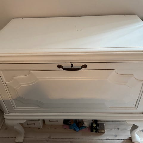 Hylder til småting. Virkelig fin gammel kommode.