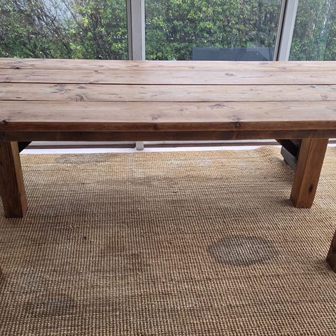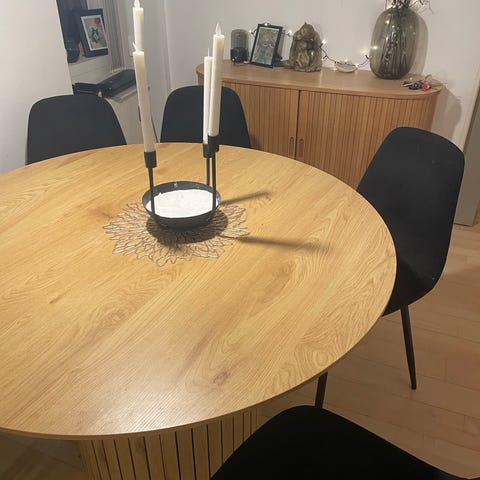 Bordet har almindelige, lette brugsspor, men er i rigtig fin stand. Overfladen kan nemt slibes let og olieres, hvis man ønsker det , så står det smukt igen.