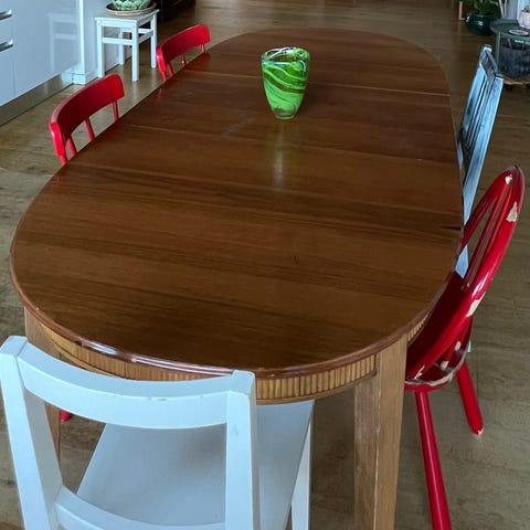 Spisebord i træ, i god stand har brugsspor og nogen mærker, men et robust og godt Spisebord.