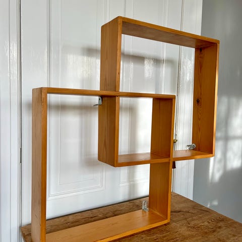 Original gammel æggebakke som nu bruges som væghylde til pynteting.