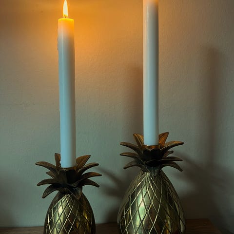 Smukke vintage ananas stager i messing H18cm og H14cm uden lys i flot stand mp 900kr afhentes i 8570 Trustrup eller sendes for 45kr