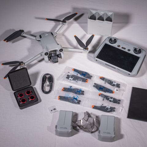 Fløjet i 15,6 timer. Massere af ekstra udstyr. Filtre, ekstra propeller. Scandisk 128mb kort til drone og 32mb kort til controller. Helipad til udendørs flyvning. Ekstra taske og sol skærm til controller samt strop og dronevest.