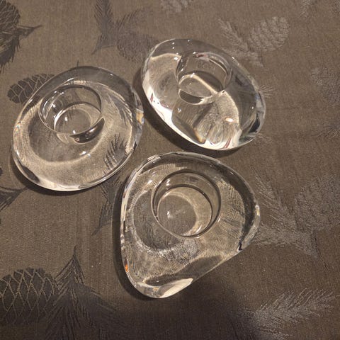 Orrefors fyrfadsstager i klar krystalglas. Tunge ca 1 kg pr styk