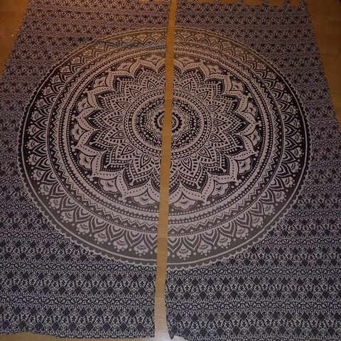 Pæne lyse gardiner i beige med blomstermotiv.