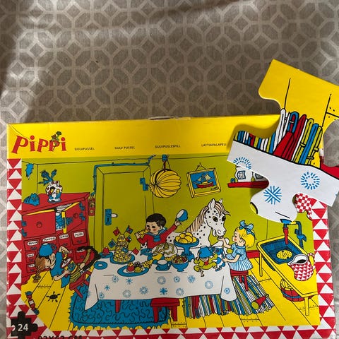3 puslespil med Pippi Langstrømpe i en æske som er ny med ubrudt folie om.