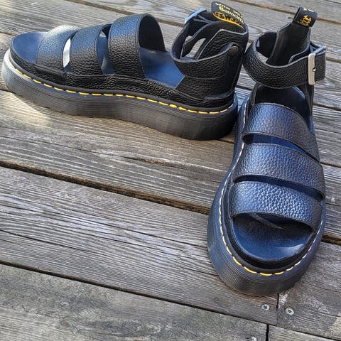 Dr. Martens Sandaler i størrelse 40, sort farve. Sandalerne er lavet i læder, med justerbare spænder for pasform.