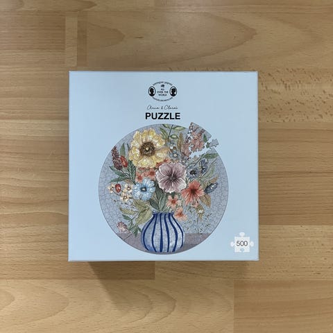 Rund puslespil på 500 brikker. Diameter 58,5cm.