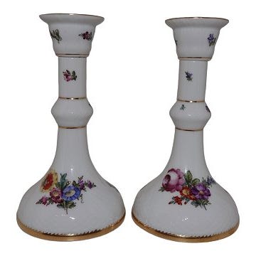 2 Lysesstager - Kgl Porcelæn -nr. 430 - fuld saksisk blomst