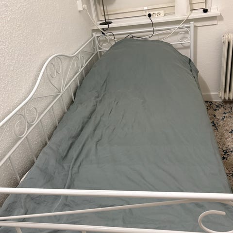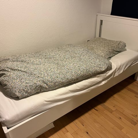 Bed structure + mattress + pillows + duvet