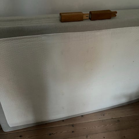 Vi sælger vores 120x200 seng. Sengen er fra Bilka men kan ikke se noget mærke. Der medfølger ingen topmadras men kun det der ses på billedet (ben og boxmadras).