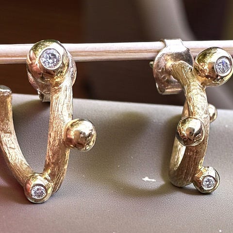 Sælger disse fine huggies i 7mm de er i 14karat guld og med tre diamanter.