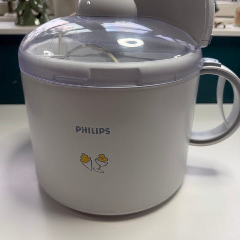 Phillips HR 2302 ismaskine, der medfølger fryse element, manual og opskriftsbog