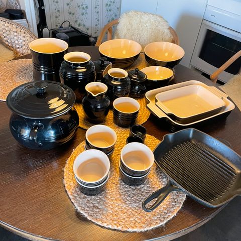 Rund gryde rød m/låg 30 cm. Diameter sort bund
