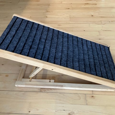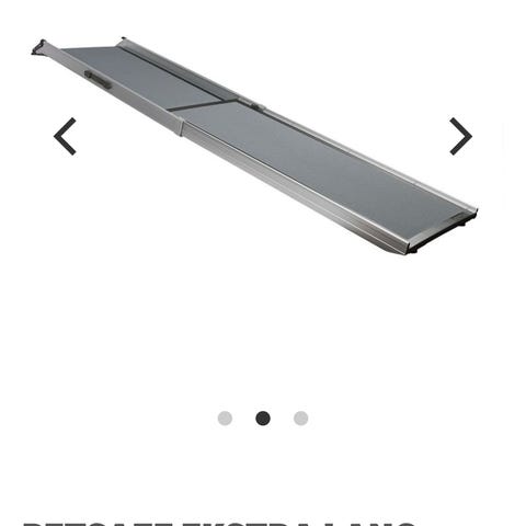 Stabil rampe i aluminium, med skridsikker belægning og i tre sammenklappelige sektioner sælges. Der er tale om et absolut topprodukt i sin kategori. Stabiliteten er vigtig for hundens tryghed- og lyst til at bruge rampen uanset om den skal kravle ind i en bil, fra en bro til en båd eller hvilken anden forhindring som rampen skal hjælpe hunden med at passere.