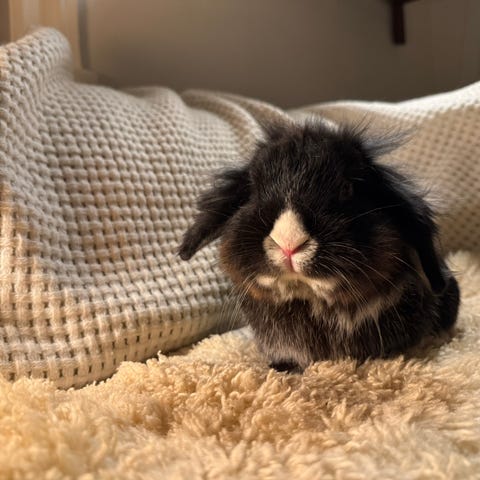 Vi har købt et par søskende, som vi fik at vide var hunner, men det var den ene så ikke. Vi vil derfor gerne finde et kærligt hjem til en hankanin. Hans forældre er dværgkaniner. Han er født 27/9 2025.