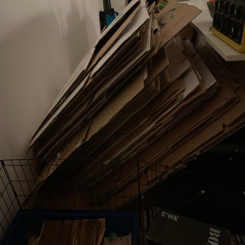 Flyttekasse med diverse plast og “velour” bøjler gives væk