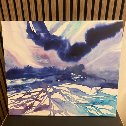 I ‘Blue Shadow’ har kunstneren Mette Holtegaard ladet organiske former og farver indtage en central plads i en beroligende komposition. Et tiltalende kunstværk, der passer naturligt ind i din eksisterende indretning. Sælges grundet flytning.