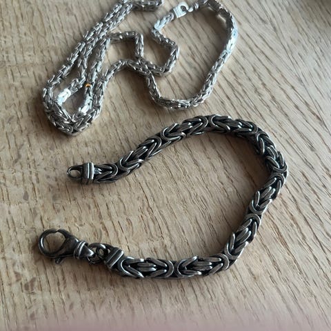 Flot og klassisk kongekæde / byzantine sæt i 925 sterling sølv, bestående af halskæde og matchende armbånd.