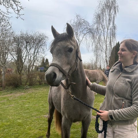 Desværre har vi haft nogle udfordringer, som er blevet en for stor mundfuld for os. De første 3 uger lod vi Calibra falde ordentligt til herhjemme. Den første skridttur på hende ender desværre brat. Inden min datter har sat sig i sadlen, falder hun af, da Calibra bukker pludseligt. Dyrlægen har været ind over, og det viser sig Calibra reagerer og siger tydeligt fra, når hun bliver trykket på ryggen. Vi har også massør/kiropraktor ude, som finder en stor nerve, der sidder i klemme i ryggen. Den bliver løsnet med flere behandlinger.