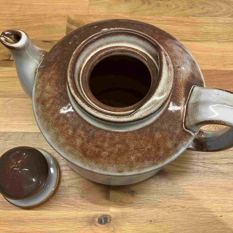 To-tonet lavendelblå keramik med gulddetaljer