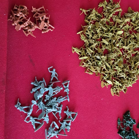 125 soldater i plast. 84 grønne og 41 grå. Dertil fly, tanks, helikopter, jeep mm. Alt i god stand. Sælges samlet. Afhentes i Vanløse eller sendes.