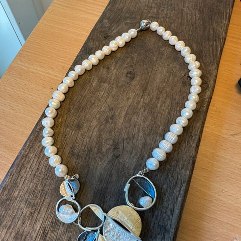 Flot perlesmykke til en festlig lejlighed. Måler ca. 40 cm