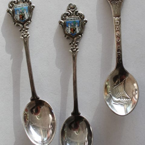 2 - flot sæt af 6 vintage teskeer med smukke mønstre på håndtaget. L 13,7 cm. Sølvplet. Stemplet - P AMF og to tårn.